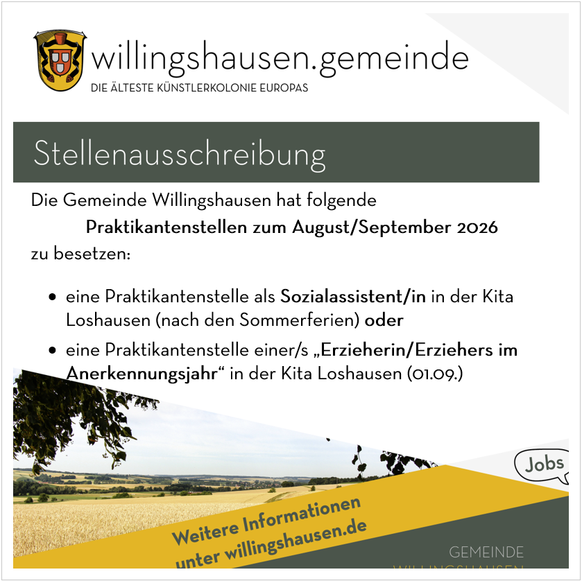 Auf Grund des § 114 der Hess. Gemeindeordnung (HGO) in der zur Zeit geltenden Fassung wird öffentlich bekanntgemacht, dass die Gemeindevertretung der Gemeinde Willingshausen in der Sitzung am 26.02.2026 folgenden Beschluss gefasst hat: